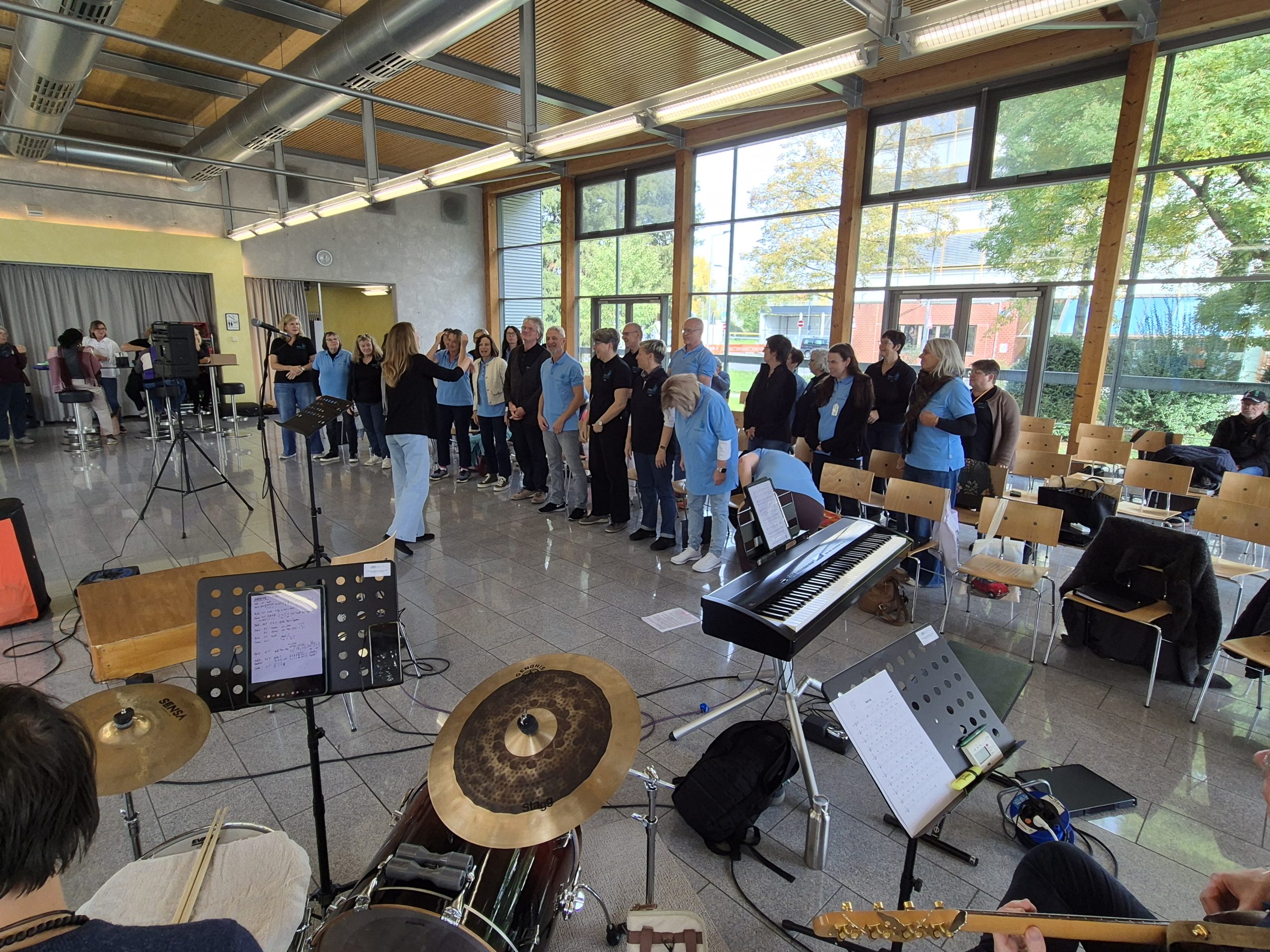 Am So., 19.10.25 fand in unserem Probenraum in Werksteil ES-Brühl die Generalprobe für unser Projekt "Konzert der Werkschöre" statt. Vier Chöre - Daimler StarVoices, Bosch-Chor, Liebherr Chor und Daimler Chor Stuttgart - 120 SängerInnen, voll motivierte DirigentInnen und Musiker, tolle Stimmung, spürbare und hörbare Begeisterung für das anstehende Konzert. Die Vorfreude ist riesig.