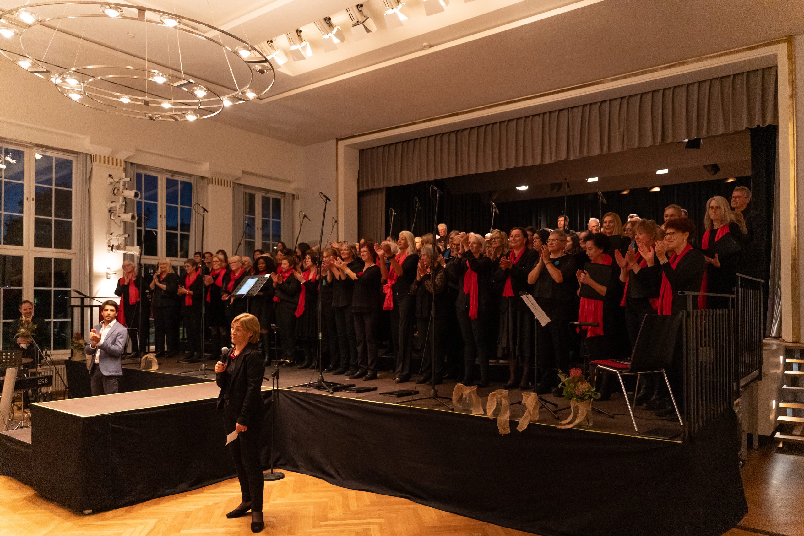 Der gelungene Wechsel zwischen ruhigen Balladen und rhythmisch mitreißenden Nummern hat das Publikum immer wieder zum Mitwippen und zum Staunen gebracht. Spätestens als alle vier Chöre mit 150 SängerInnen für die gemeinsamen Stücke „Tage wie Diese“ sowie „Lass die Musik an“ auf der Bühne standen, war das Publikum vollkommen begeistert.