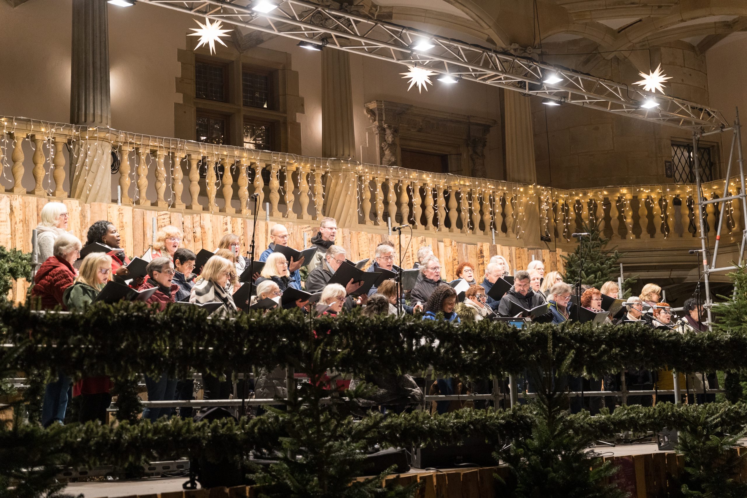Seit über dreißig Jahren ist unser Daimler Chor Stuttgart ein fester Bestandteil der Weihnachtskonzerte im Innenhof des Alten Schlosses der Stadt Stuttgart. Am 10. Dezember 2025 begeisterten wir vor einer wunderschönen historischen Kulisse die Besucher mit einer Auswahl stimmungsvoller Weihnachtslieder.